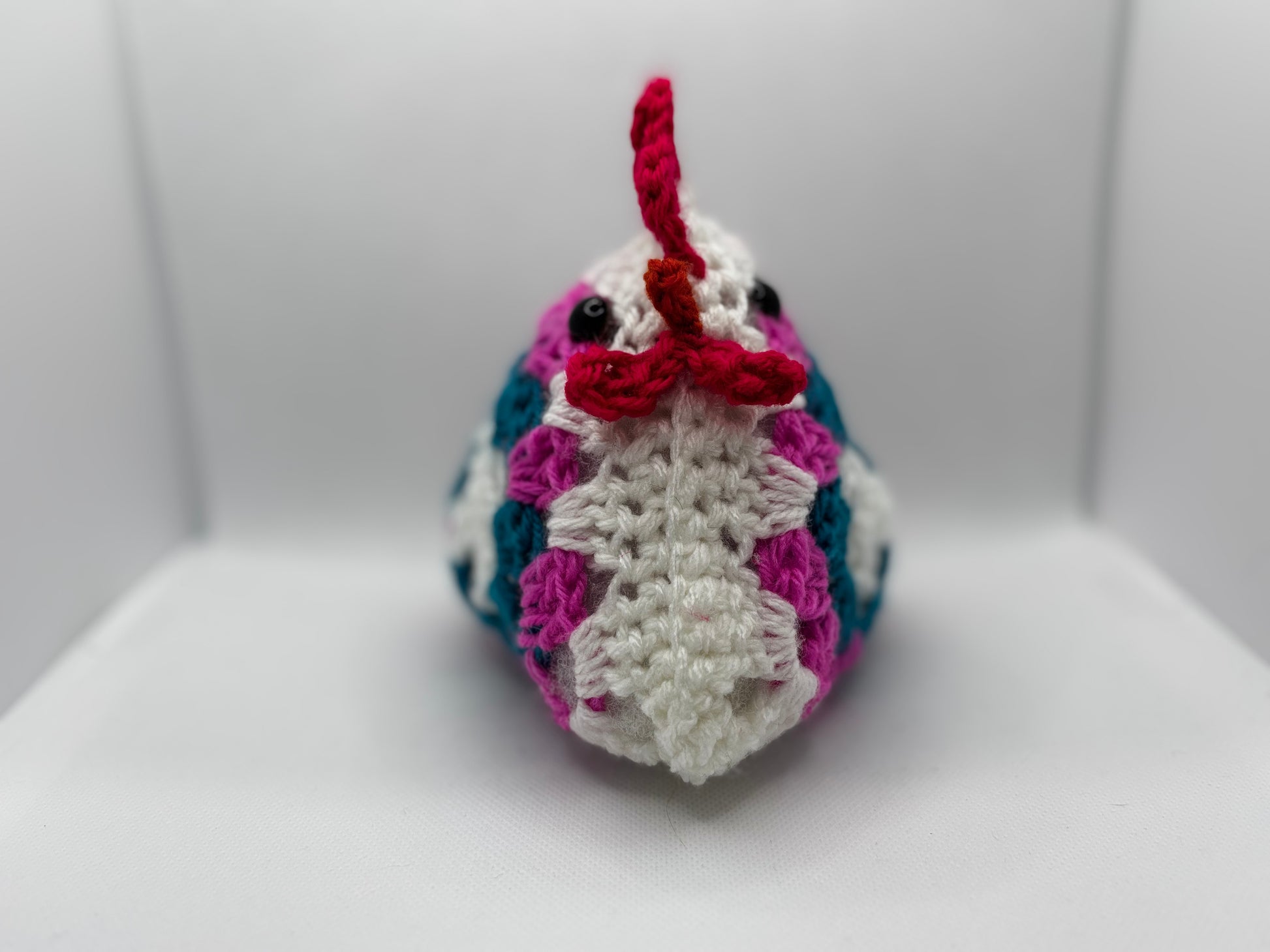 Chelsea is a cozy chick made from the timeless charm of a classic granny square. With bold colors, vintage vibes, and just the right amount of sass, she’s ready to roost wherever you need a little handmade happiness. Whether she’s perched on a bookshelf or nestled into a craft nook, Chelsea brings warmth, whimsy, and a dash of farmhouse flair. Based on a pattern by ©Greene Grafts.